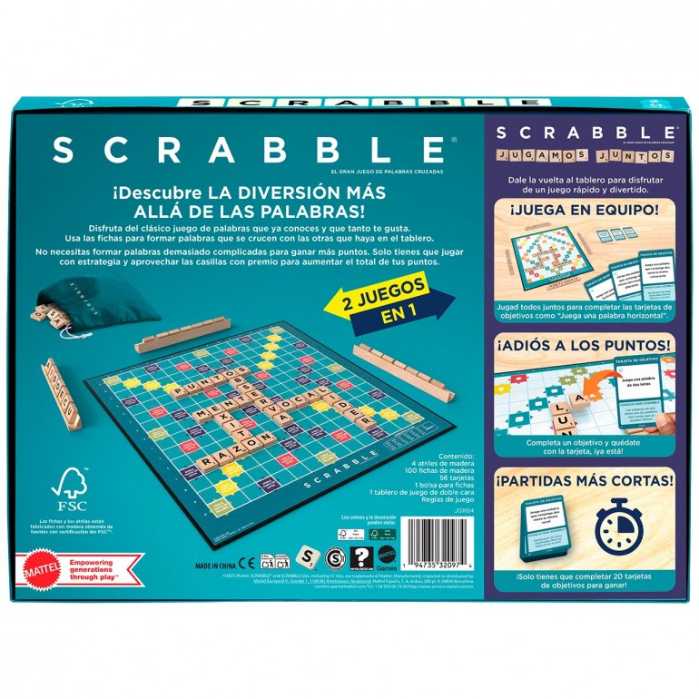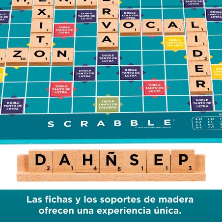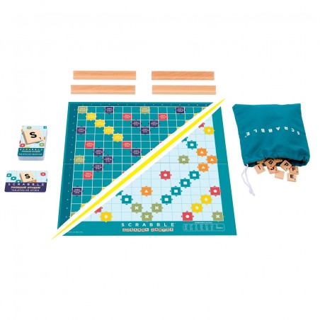 Vive la diversión más allá de las palabras con el juego de mesa Scrabble, que ofrece dos formas de jugar con fichas de letras y atriles de madera de primera calidad. Los jugadores pueden disfrutar del Scrabble, el juego clásico de palabras cruzadas que ya conocen y tanto les gusta (con el que formarán palabras y buscarán puntuaciones de Doble tanto de letra y Triple tanto de palabra), o pueden darle la vuelta al tablero y probar Scrabble Together, un juego rápido e informal en el que los jugadores cooperan para completar desafíos de palabras. Estos dos juegos deletrean la DIVERSIÓN tanto para los jugadores veteranos como para los nuevos.