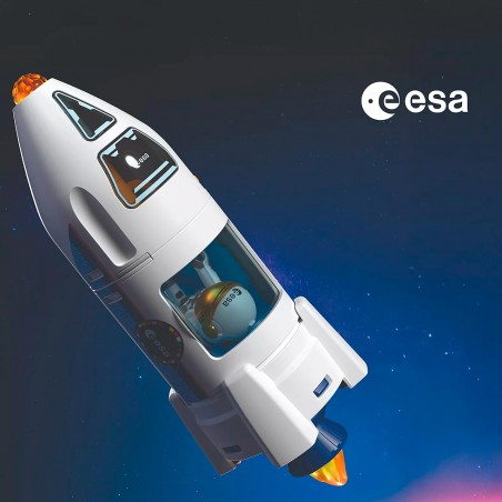 Desarrollado en colaboración con la Agencia Espacial Europea (ESA), PLAYMOBIL lleva la fascinación de la exploración espacial directamente al cuarto de los niños. El cohete es modular: puede extenderse o acortarse dependiendo de la misión, así como acoplarse a la plataforma de aterrizaje móvil, que sirve como estación base en Marte. Los brazos móviles de la grúa ayudan a recoger las muestras de suelo y guardarlas de forma segura en el cohete antes del despegue, ya sea en el espacio de carga delantero o en la característica punta de la parte frontal. El cohete ofrece asientos para los dos astronautas. Prepárate para despegar: ¡comienza la próxima misión de investigación de PLAYMOBIL!