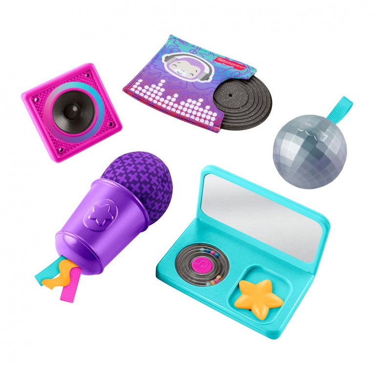¡Tu bebé se lo pasará en grande jugando boca abajo hasta la hora de la siesta con este Conjunto de regalo de DJ Mis primeros momentos de Fisher-Price! Inspirado en nuestro popular juguete Mesa de mezclas de DJ, este conjunto de temática musical para bebés recién nacidos ofrece 6 actividades que permiten a los pequeños DJ explorar con los sentidos. Este moderno conjunto de regalo incluye un ordenador portátil de juguete con espejo, un altavoz con burbujas de silicona para apretar, un micrófono que suena al apretarlo, un adorable sonajero con forma de bola de discoteca, un disco de vinilo mordedor sin BPA y una funda de disco que cruje para favorecer el desarrollo de los sentidos, la motricidad fina, etc.