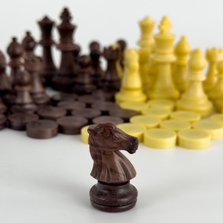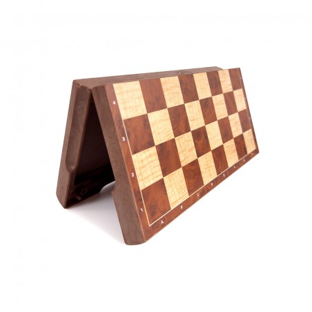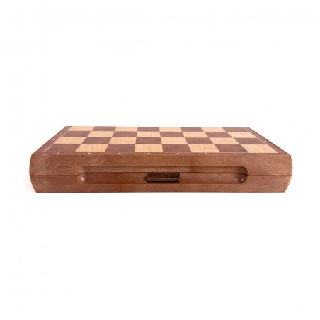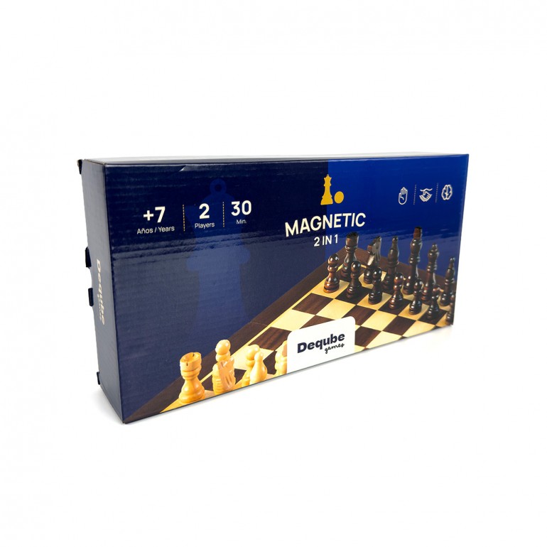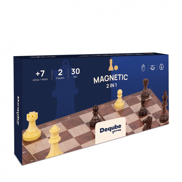 Tablero magnético de ajedrez y damas con formato portátil de 24x24 cm. Ideal para viajes o espacios reducidos, permite jugar cómodamente sin perder piezas. Combina funcionalidad, elegancia y entretenimiento.