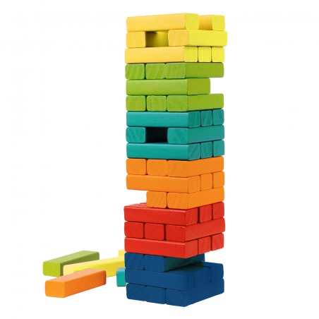 Juego de bloques de colores fabricado en madera FSC. Ideal para desarrollar la coordinación, el equilibrio y la creatividad. Perfecto para todas las edades, combina diversión, aprendizaje y sostenibilidad.
