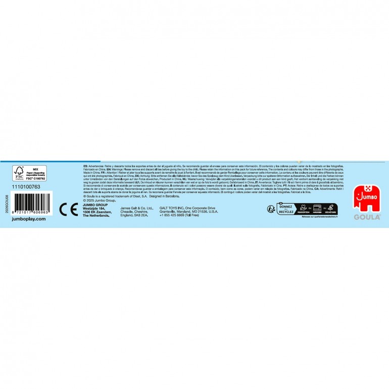 Puzzle XXL con 12 piezas en el que descubrir diferentes sorpresas táctiles en las solapas de algunas piezas. Fomenta la exploración y el conocimiento de la vida en la granja mediante el juego sensorial.