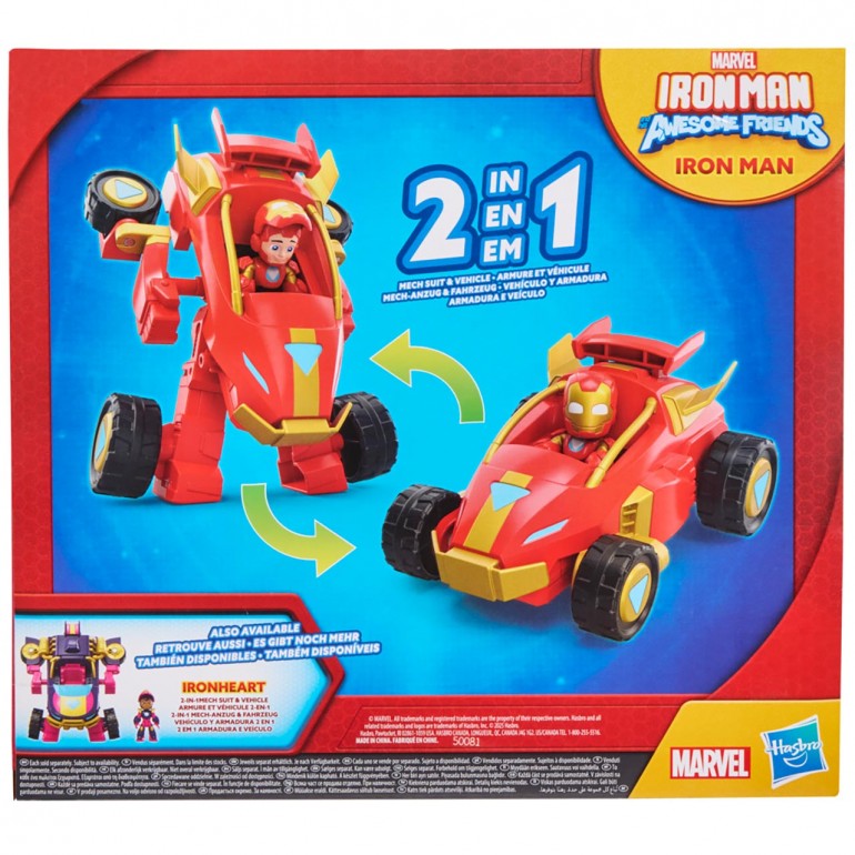 Vehículo y armadura 2 en 1. Los niños pueden convertirse en Iron Man, de Iron Man and His Awesome Friends, de vehículo en armadura y viceversa en tan solo 4 pasos fáciles.