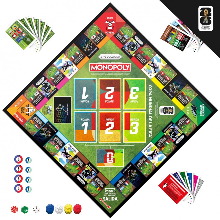 ¡Compite por la gloria en la Copa mundial de la FIFA 2026 con este juego de mesa Monopoly Panini Prizm: Copa mundial de la FIFA! Incluye cartas coleccionables Monopoly Panini Prizm Copa mundial de la FIFA 2026. Selecciona e intercambia jugadores usando las 16 cartas Panini (un Pack de inicio de 8 cartas, dos Packs Prizm de 4 cartas). Busca estrellas como Lionel Messi, Kylian Mbappé y Mia Hamm. ¡Encuentra 6 cartas exclusivas Gold Cracked Ice de Monopoly Panini Prizm en cada caja! Busca las cartas exclusivas de triplete y las ultrarraras White Money Blast. Toma el control de partidos históricos en el tablero y, después, compite contra los oponentes que caigan en ellos tirando dados especiales para mejorar las habilidades de ataque o defensa de tus jugadores.