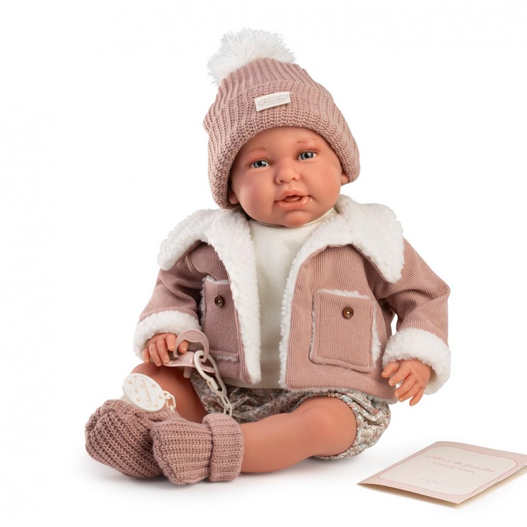 Mi Primer Reborn Daniela con chaqueta de borreguito de Muñecas Antonio Juan es la compañera perfecta para introducir a los más pequeños en el maravilloso mundo de las muñecas reborn. Esta encantadora muñeca captura la ternura y el realismo que caracteriza a la colección, diseñada especialmente para inspirar el juego de rol, el cuidado y la imaginación. Daniela viste un adorable conjunto que incluye una acogedora chaqueta de borreguito en tonos suaves, complementada con un gorro de punto con pompón, pantalón estampado y botitas tejidas, creando un look irresistible que invita a abrazarla y mimarla.
