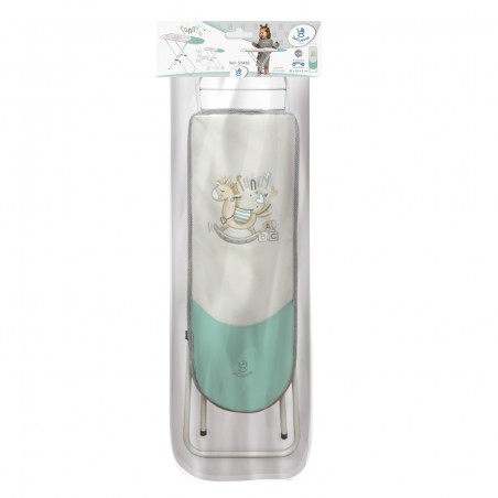 Fabricado con material de alta calidad y muy resistente, este bonito planchador de aluminio blanco, con estructura plegable y tejido de color verde, es ideal para que los pequeños puedan aprender a planchar su ropita y la de sus bebés.