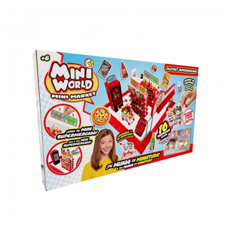 ¡Vive la experiencia de tu propio super en versión mini! El Playset Supermercado incluye 10 mini coleccionables, además de una cesta y un carrito de la compra para que puedas jugar, organizar y completar tu colección. ¡Abre, descubre y diviértete con el universo Mini World, donde cada detalle cuenta!