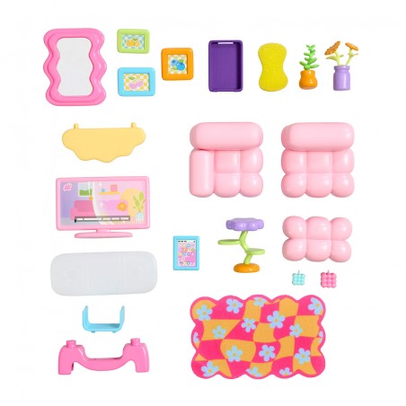 ¡Hora de decorar! Con Suite Spaces Salón puedes mover el sofá modular, combinar plantas y macetas, y elegir los colores que mejor encajen con tu estilo. Un espacio DIY lleno de encanto, suavidad y muuucha personalidad. Inluye 20 accesorios, + 2 papeles de papeles y +1 papel de suelo.