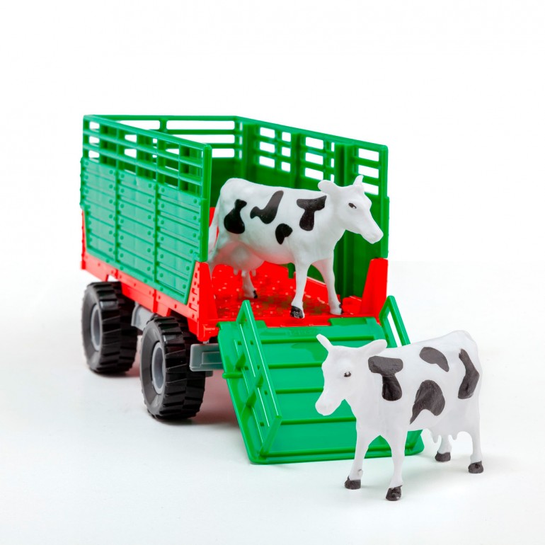 Tractor con motor y sonidos. Incluye luces LED y 3 botones con sonidos: motor en marcha, bocina y marcha atrás. Viene con un tractor, dos animales y un remolque. ¡Diversión garantizada para los pequeños granjeros!