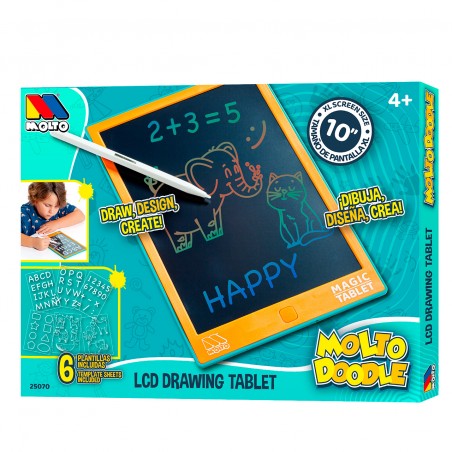 Tableta de dibujo LCD de 10 pulgadas con 6 plantillas y lápiz. Pantalla más brillante y clara, sensible a la presión. Botón de borrado automático. Portátil, liviana y segura para los ojos, ideal para estimular la creatividad infantil.