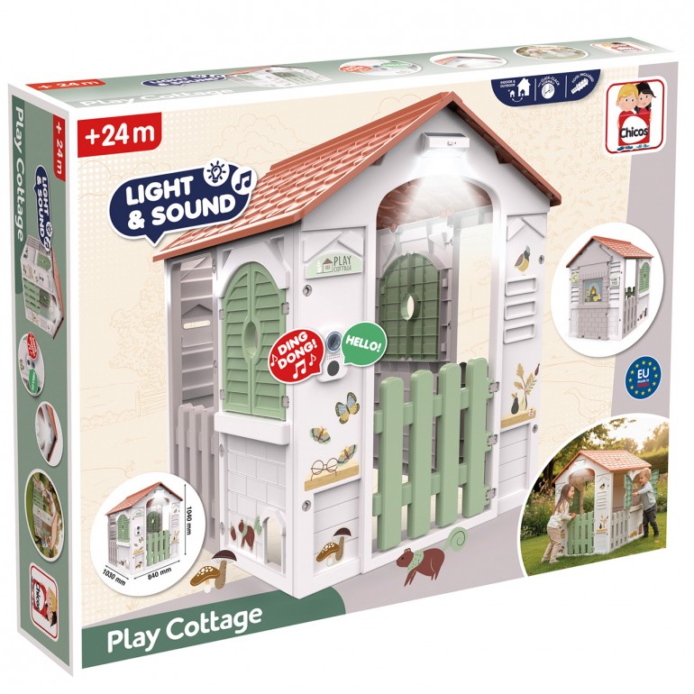 Casita Play Cottage para imaginar y aprender jugando, equipada con luz y sonido. La casita incluye ventanas abatibles, buzón para cartas y una gatera para que las mascotas tambien puedan visitar la casa de campo. Casita de pláctico de gran resistencia, fácil montaje y apta tanto para interior como para exterior.