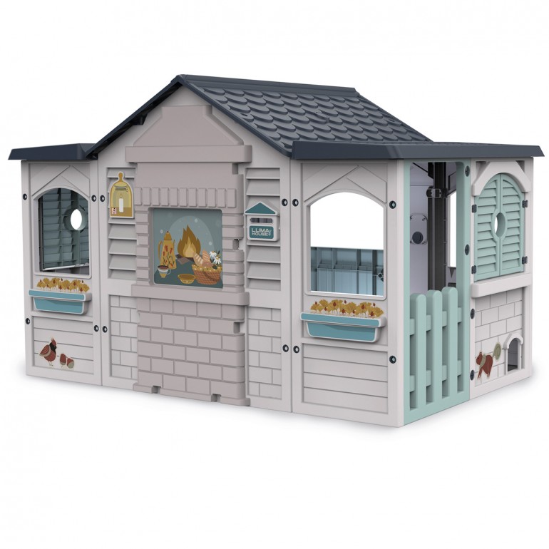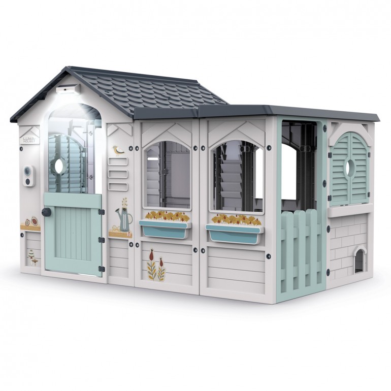 Gran casita Luma House. La casita ofrece un gran espacio de juego para inventar y crear divertidas historias con todos tus amigos. La casita Luma House equipada con luz y sonido, tiene ventanas abatibles, buzón para cartas, una gatera para que las mascotas tambiés puedan ser invitadas y adhesivos para que puedas decorarla como más te guste. Además, es de muy fácil montaje gracias a sus piezas "click-clack".
