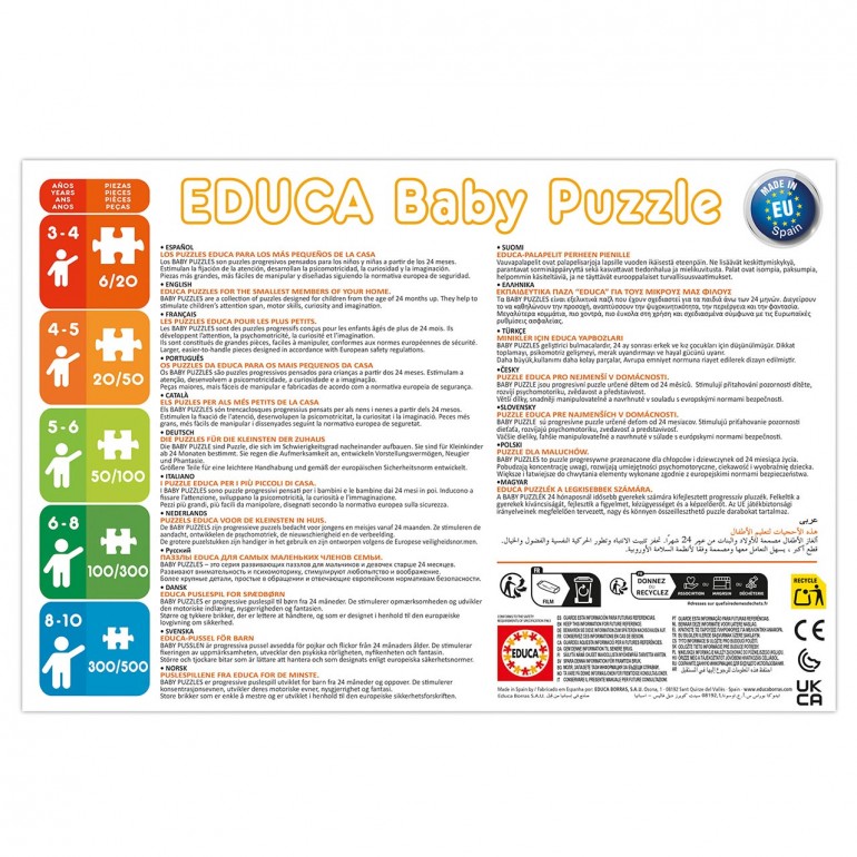 Set de 5 puzzles progresivos de 3 a 5 piezas para construir auténticas figuras de tus animalitos favoritos y jugar con ellas. Los puzzles para los más pequeños de la casa compuestos por grandes piezas, perfectamente acabadas para que sea sencilla y segura su manipulación por los niños.