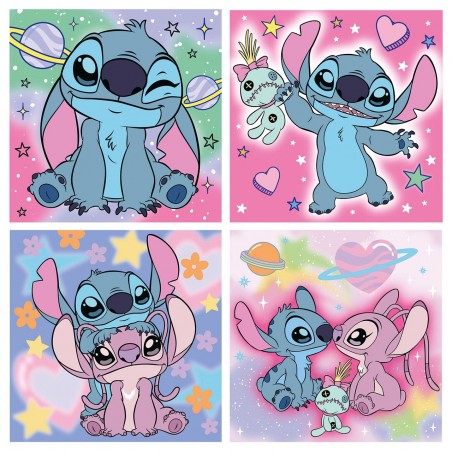 Divertida maleta con 4 puzzles progresivos de Stitch. La maleta incluye 4 puzzles progresivos de cartón, de 12, 16, 20 y 25 piezas, para que niños y niñas vayan ganando habilidad en el montaje de puzzles. Tamaño aproximado de los puzzles: 16 x 16 cm. Tamaño de la maleta: 25 x 25 x 6 cm.