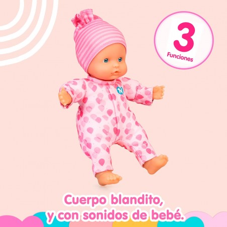 Este adorable muñeco cuenta con tres funciones: al presionar sus manos o pies, emite tiernos sonidos de bebé, agregando realismo y momentos entrañables al juego. Nenuco Blandito puede meterse el dedo en la boca, imitando el comportamiento de los bebés reales. Esta fabricado con materiales blanditos y agradables al tacto, este muñeco está diseñado pensando en la comodidad y seguridad de los niños mientras juegan y lo abrazan.