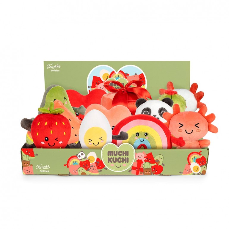 Los Muchi Kuchis llegan en un surtido aleatorio de 24 peluches diferentes de 24 cm, con diseños únicos y adorables. Son suaves, esponjosos y llenos de detalles encantadores. Hechos con materiales de calidad, estos peluches ofrecen una textura increíblemente suave y un relleno esponjoso que los hace ideales para abrazar y disfrutar.