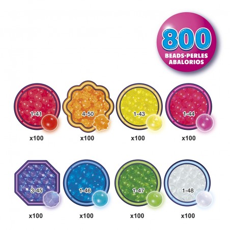 Este set de recarga de cuentas para manualidades incluye 800 cuentas en 8 colores. Incluye cuentas clásicas, poligonales y en forma de estrella en 8 colores.