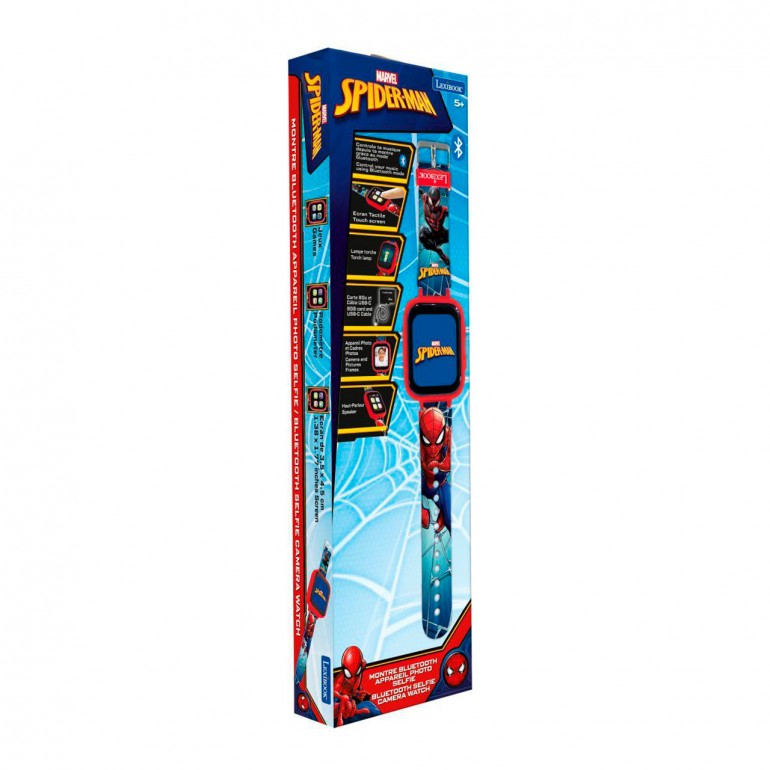 Impresionante diseño de Spider-Man con correa ajustable y pantalla táctil HD. Reloj Bluetooth con cámara de 720p para tomar fotos y videos, reproductor de MP3 para disfrutar de tu música favorita y 5 juegos integrados para divertirte en cualquier momento y lugar. Tarjeta de 8 GB incluida para almacenar más de 2000 fotos en el reloj.