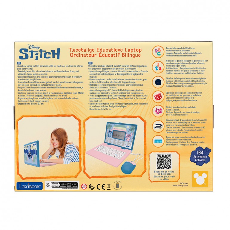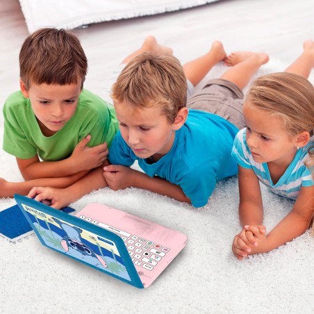 Portátil con contenido educativo en dos idiomas, que abarca Matemáticas, Mecanografía, Lógica y Música. Incluye tres cautivadoras historias animadas con una duración total de 30 minutos para un aprendizaje enriquecedor. Actividades divertidas con múltiples niveles para aprender, poner a prueba y ampliar conocimientos.