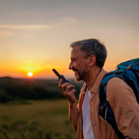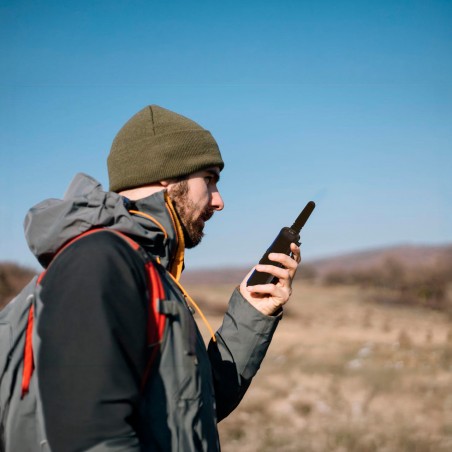 Comunícate hasta 5 km al aire libre gracias a una transmisión digital clara y potente. 8 canales disponibles para chatear con múltiples dispositivos y evitar interferencias. Ideal para actividades grupales o al aire libre. Pantalla LCD retroiluminada con indicador de batería baja, pitido "Roger", modo silencioso para eliminar ruidos parásitos, y bloqueo de teclado para evitar manipulaciones involuntarias. Emite un tono de llamada para llamar la atención de otros dispositivos y contiene 10 tonos de llamada disponibles para personalizar tus llamadas.