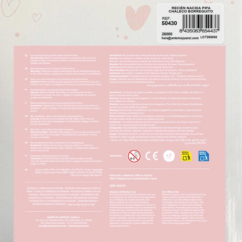 MUÑECA RECIÉN NACIDA PIPA CHALECO 50430 ANTONIO JUAN