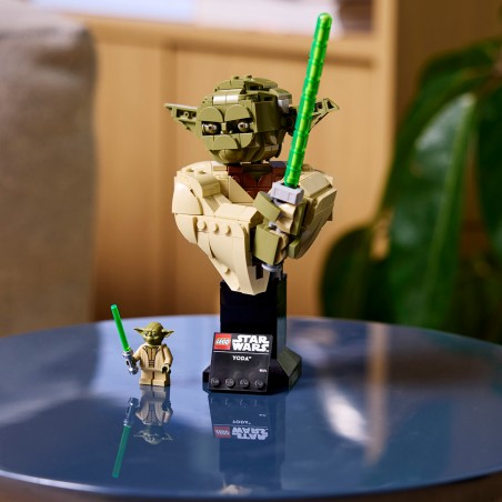 Desconecta de todo y concéntrate en recrear al Maestro Yoda tal y como aparece en Star Wars: El Ataque de los Clones. Construye una espada láser paraque la sostenga y expón tu creación en el soporte construible con placa identificativa. Crea diferentes expresiones ajustando la cabeza y las orejas de Yoda, y gira el busto en el soporte para verlo desde todos los ángulos. Reconstruye ligeramente el soporte y tendrás espacio para colocar la minifigura LEGO de Yoda incluida con espada láser. El set contiene 399 piezas.