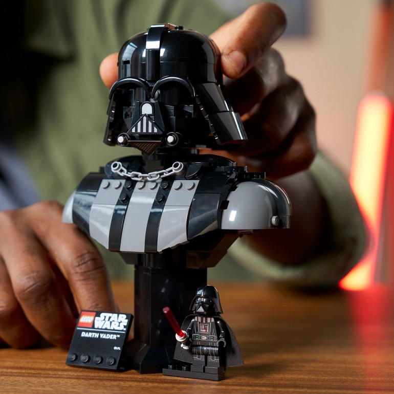 ¡Pon a prueba tus habilidades de construcción y rinde homenaje a un emblemático villano con el Busto de Darth Vader LEGO Star Wars! Usa ladrillos LEGO e ingeniosas técnicas de construcción para recrear los detalles del casco del Lord Oscuro tal y como aparece en la trilogía clásica de Star Wars. Expón tu estatua de Darth Vader en el soporte construible con placa identificativa. Muévele la cabeza a izquierda y derecha, y gira el busto completo en el soporte para verlo desde todos los ángulos. Reconstruye ligeramente el soporte para colocar también la minifigura LEGO de Darth Vader incluida. El set contiene 349 piezas.