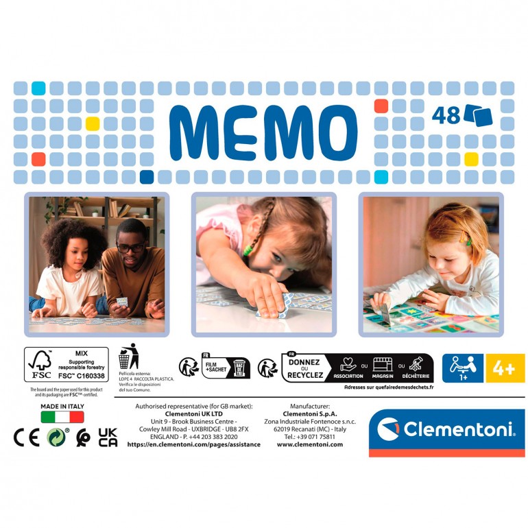 Un juego clásico y a la vez actual para desarrollar la capacidad de observación y la memoria. 48 fichas de 5 x 5 cm, resistentes y de colores.