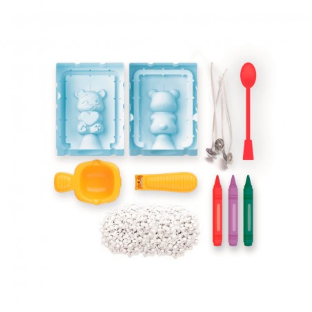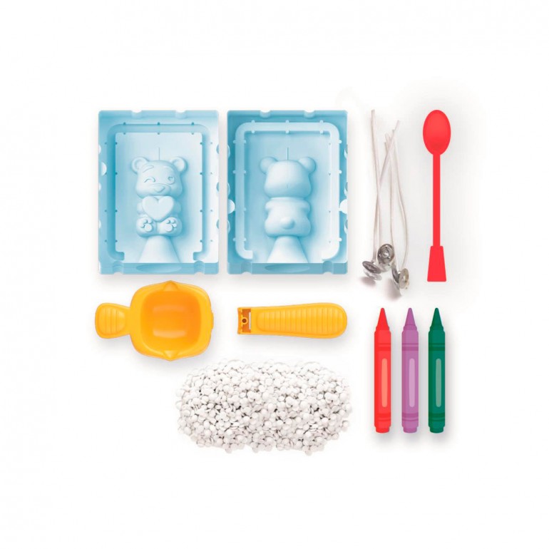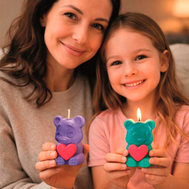 Un pequeño kit para crear 2 velas artesanales con parafina y mecha. Incluye herramientas, pintura de cera y selladores al vacío. Elige el estilo que te permitirá crear velas con dulces ositos.