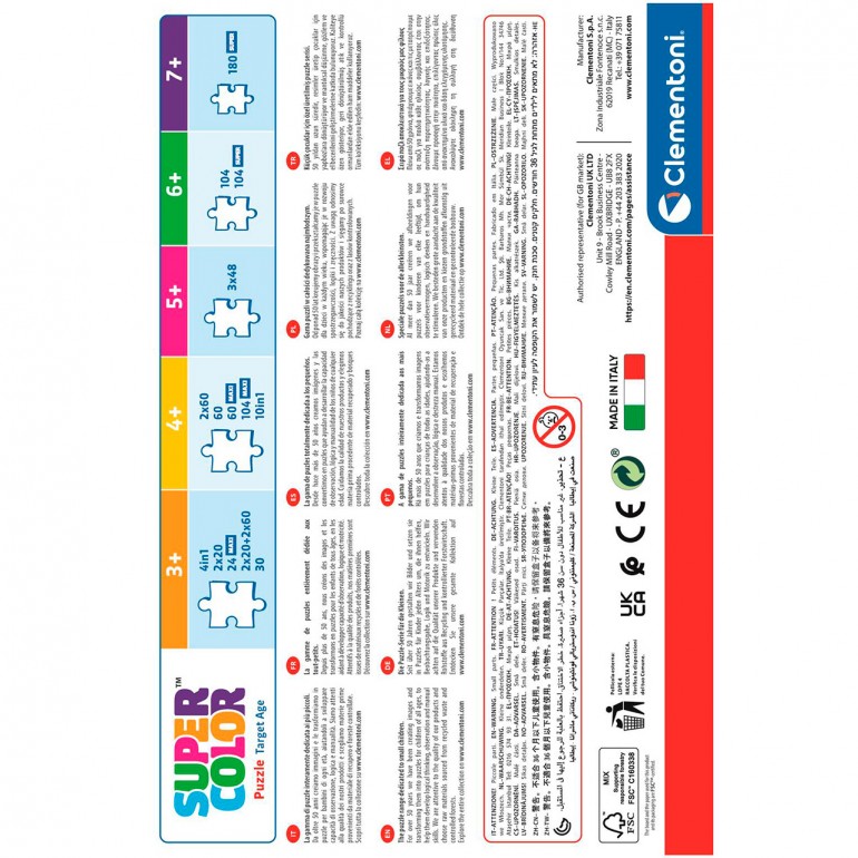 2 puzles de 20 piezas. Tamaño completo del rompecabezas: 27 x 19 cm.