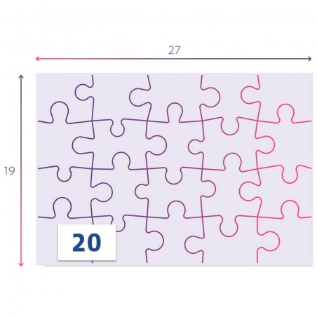 2 puzles de 20 piezas. Tamaño completo del rompecabezas: 27 x 19 cm.