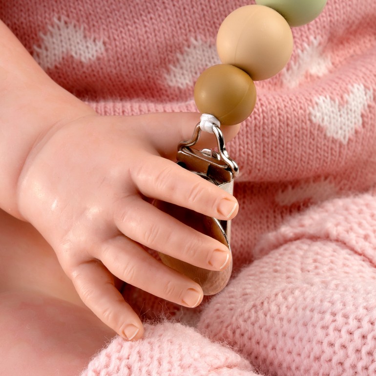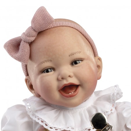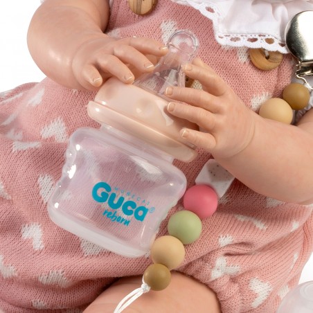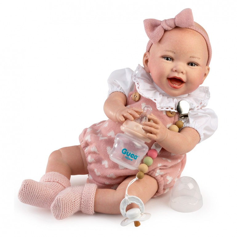 Muñeca Reborn Abril de Guca es una adorable compañera de juego que captura la esencia de un bebé real. Vestida con un pelele de lana con un diseño de corazones y una camisa blanca, esta muñeca ofrece una experiencia de juego auténtica. Mide 42 cm y viene acompañada de un biberón, lo que la convierte en el regalo perfecto para niñas y niños que disfrutan de cuidar y mimar a sus muñecas.