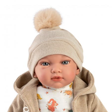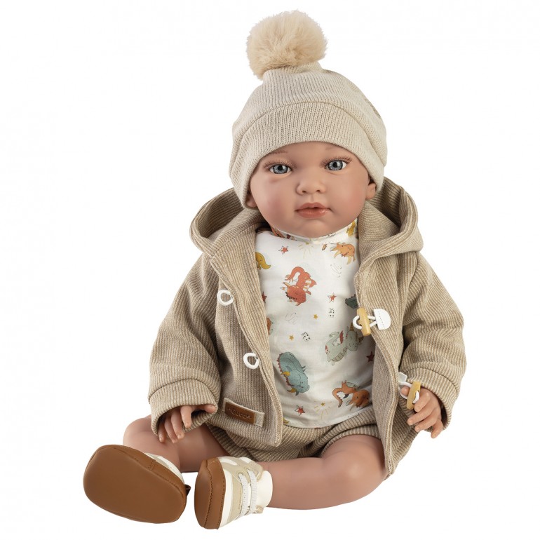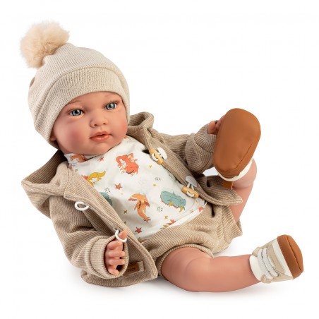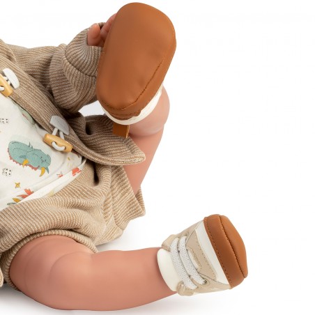Muñeco con peso Unai es un encantador juguete de 42 cm, diseñado para ofrecer una experiencia realista a niñas y niños. Vestido con una camiseta de dinosaurios, chaqueta, pantalón de pana, gorrito y zapatillas, esta muñeca es perfecta para el juego de roles. Su peso y tamaño proporcionan una sensación auténtica, similar a la de un bebé real.